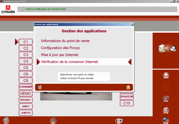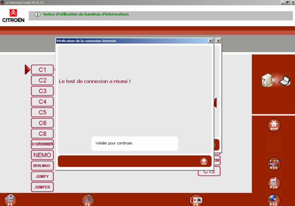 Přístroj LEXIA se připojí k serverům PSA a automaticky přenese informace, jako například identifikátor PC a typ výrobku, za účelem aktivace.