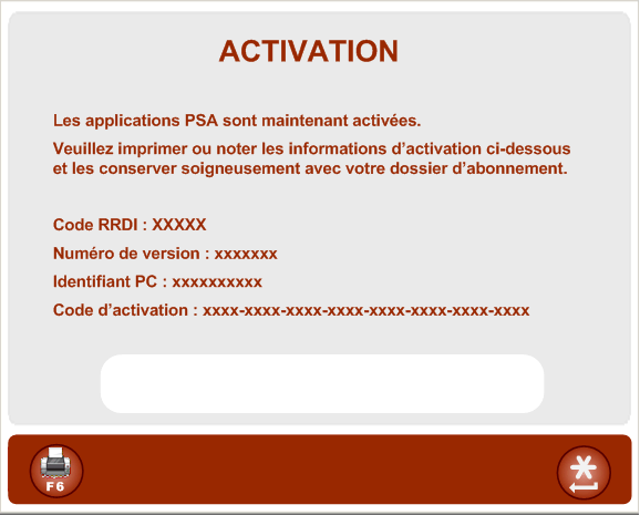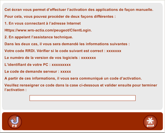 Když je aktivace na serveru WRS provedena pracovníkem horké linky ACTIA, uživatel musí zadat do přístroje aktivační kód, který obdrží, pro dokončení postupu a možnost používání diagnostického přístroje.
