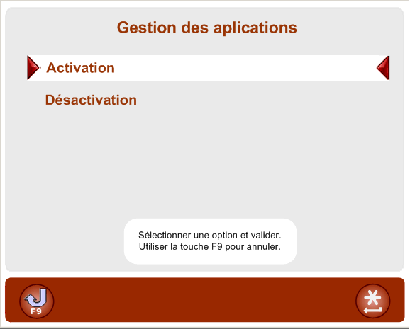 Zvolit nabídku "Aktivace/Dezaktivace", poté potvrdit kliknutím na tlačítko " ".